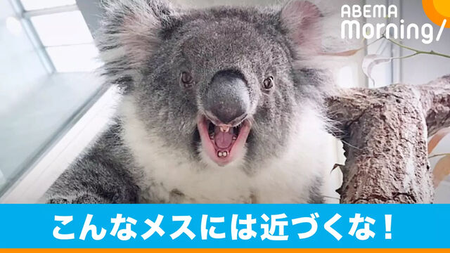 「普段コアラはあまり表情をかえたり鳴いたりしない動物なんですけど、月に1回、メスに発情期がくる。オスを受け入れたくない時や発情がピークに達していない時、威嚇して追い払う行動をとります」(淡路ファームパーク イングランドの丘 飼育担当長・後藤敦さん)