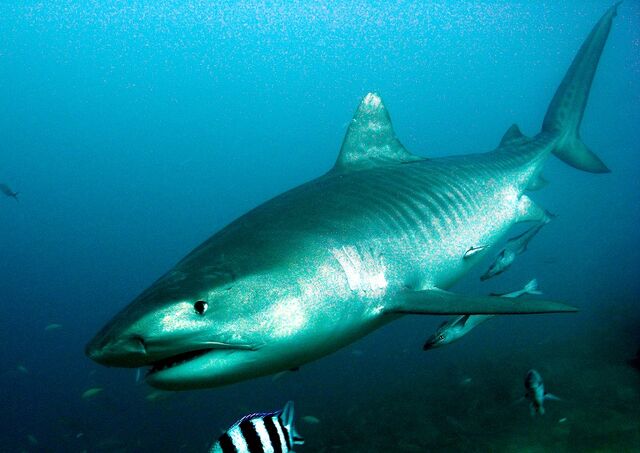 現地時間5月12日、スコット・ハラグチさんはカヤックでオアフ島の沖合に出て、魚釣りを楽しんでいました。すると突然、海面から現れた大きなサメに体当たりされてしまったそう。 これら一連の出来事は、スコットさんのカヤックに取り付けてあったカメラに収められていました。サメはカヤックの前方から近づいてきて、進行方向左側の側面に激突。大きな口を開けて、カヤックに噛み付いてきました。すぐに気づいたスコットさんは「タイガーシャークだ!」と叫んで、近くにいた仲間たちに注意を呼びかけました。 幸いにもけがはなかったというスコットさん。サメを確認する前に「フーッ」という音を聞いたそうで、「見上げると、カヤックの側面に幅の広い茶色のものが見えた。一瞬、カメかと思いました」と振り返っています。 一般的に20フィート(約6メートル)ほどあるというタイガーシャークは、体にトラと似た模様があることからその名が付けられており、日本ではイタチザメと呼ばれています。世界中の温帯から熱帯海域に分布するサメで、クジラなどの哺乳類をはじめ、ウミガメやウミヘビなどの爬虫類までなんでも食べるそうです。