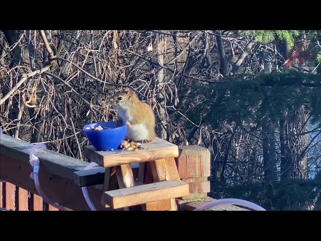 リス、古い洋梨を食べ酔ってしまう!