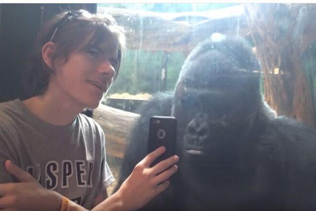ゴリラもスマホにハマってしまうか!(((( ;゚д゚)))