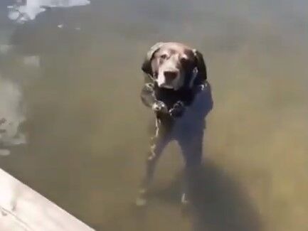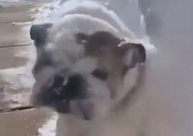 大荒れの台風の中、必死に◯ンコを頑張るワンちゃん